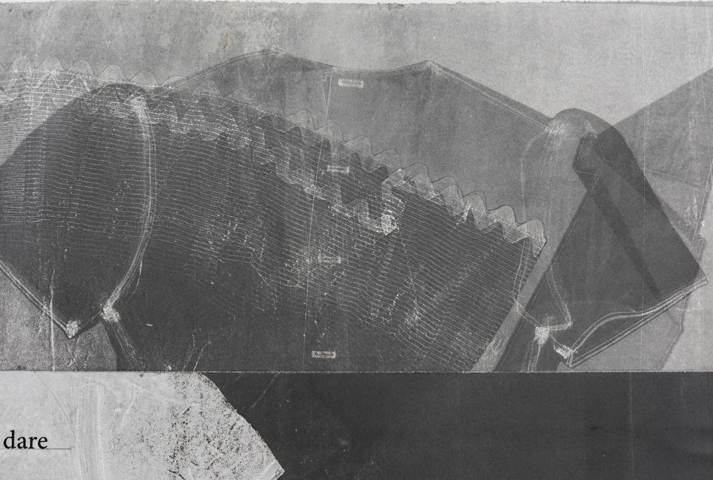 How did you dare (2020-21) Graphite/ink collage with text 30 x 41.5 inches